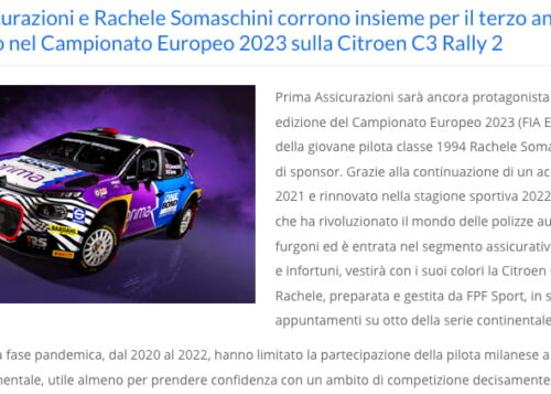 MEDIAKEY.TV • Prima Assicurazioni e Rachele Somaschini corrono insieme per il terzo anno consecutivo nel Campionato Europeo 2023 sulla Citroen C3 Rally 2