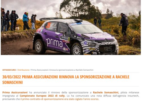 RALLYLINK.IT • Rachele Somaschini e Prima Assicurazioni ancora insieme nel Campionato Europeo 2022 sulla Citroen C3 Rally 2